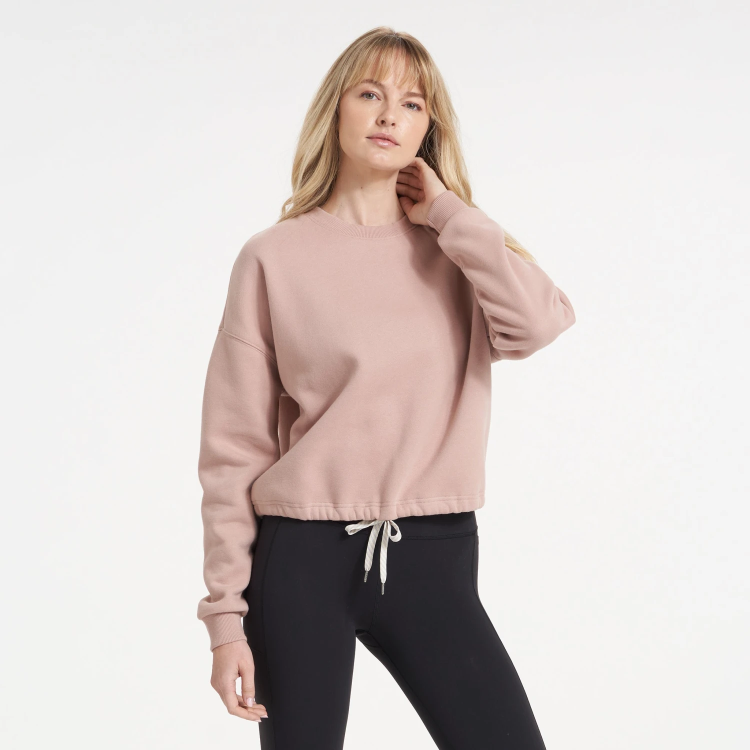 Sueded and stretchy, the brushed french terry fabric of the Restore offers a soft touch and a smooth finish. The Restore Crew is a cozy crew neck with a drawstring cinch at the bottom hem so you can choose between fitted or relaxed. Great for running, training, yoga, traveling and chilling.